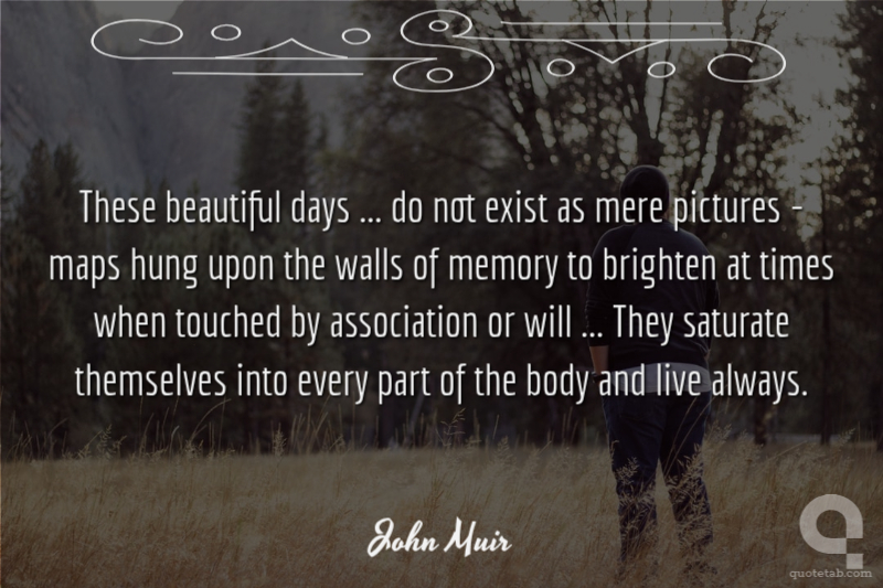 These beautiful days ... do not exist as mere pictures - maps hung upon the walls of memory to brighten at times when touched by association or will ... They saturate themselves into every part of the body and live always.