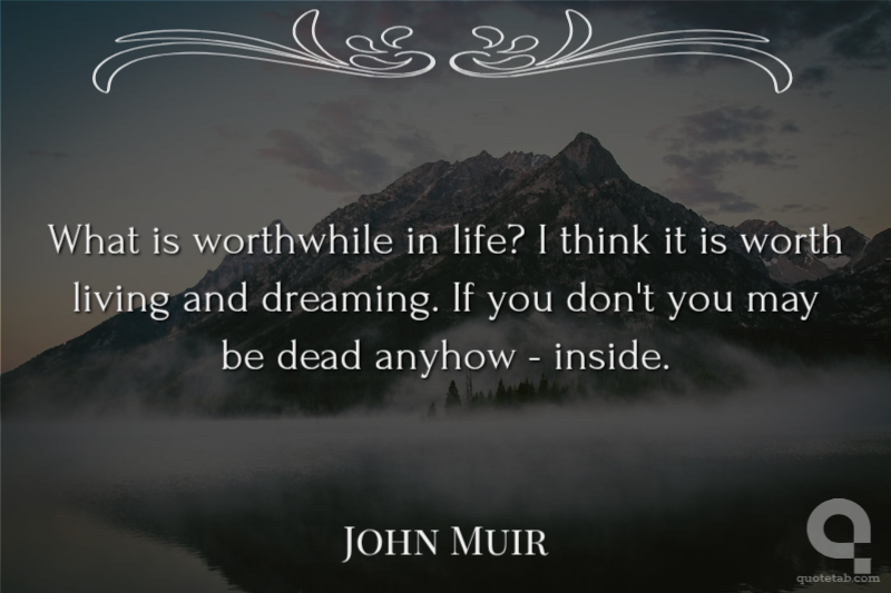 What is worthwhile in life? I think it is worth living and dreaming. If you don't you may be dead anyhow - inside.