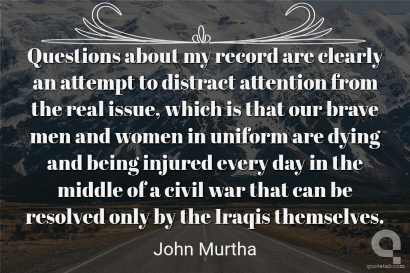 Questions about my record are clearly an attempt to distract attention from the real issue, which is that our brave men and women in uniform are dying and being injured every day in the middle of a civil war that can be resolved only by the Iraqis themselves.