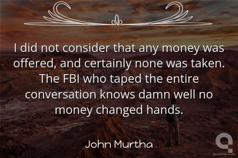 I did not consider that any money was offered, and certainly none was taken. The FBI who taped the entire conversation knows damn well no money changed hands.