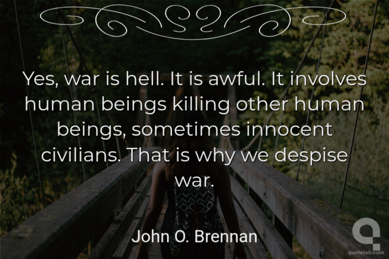Yes, war is hell. It is awful. It involves human beings killing other human beings, sometimes innocent civilians. That is why we despise war.