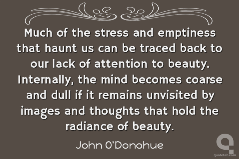 Much of the stress and emptiness that haunt us can be traced back to our lack of attention to beauty. Internally, the mind becomes coarse and dull if it remains unvisited by images and thoughts that hold the radiance of beauty.