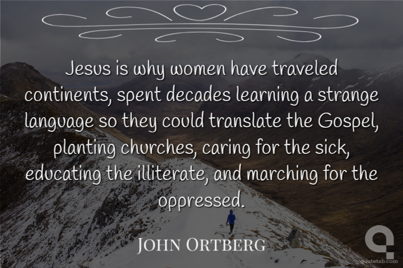 Jesus is why women have traveled continents, spent decades learning a strange language so they could translate the Gospel, planting churches, caring for the sick, educating the illiterate, and marching for the oppressed.