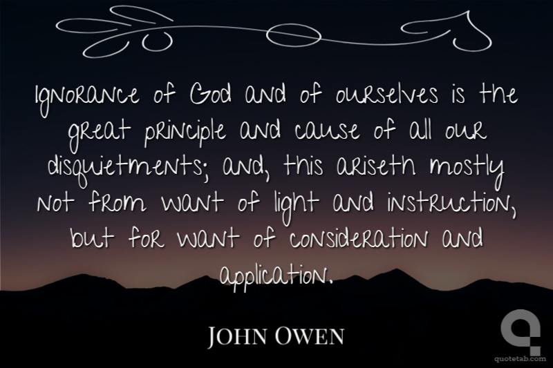 Ignorance of God and of ourselves is the great principle and cause of all our disquietments; and, this ariseth mostly not from want of light and instruction, but for want of consideration and application.