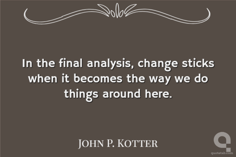 In the final analysis, change sticks when it becomes the way we do things around here.