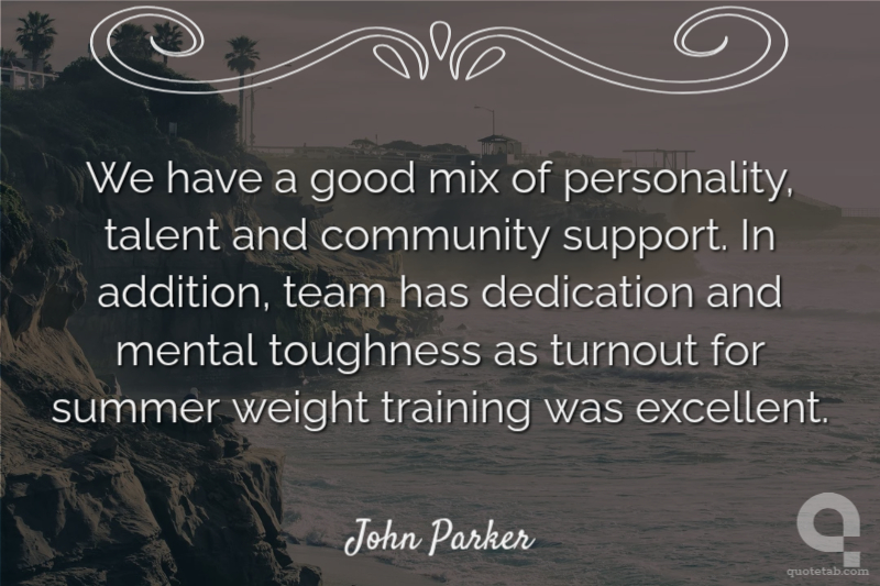 We have a good mix of personality, talent and community support. In addition, team has dedication and mental toughness as turnout for summer weight training was excellent.