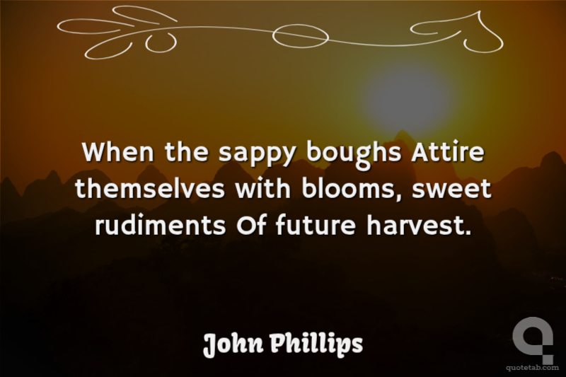When the sappy boughs Attire themselves with blooms, sweet rudiments Of future harvest.