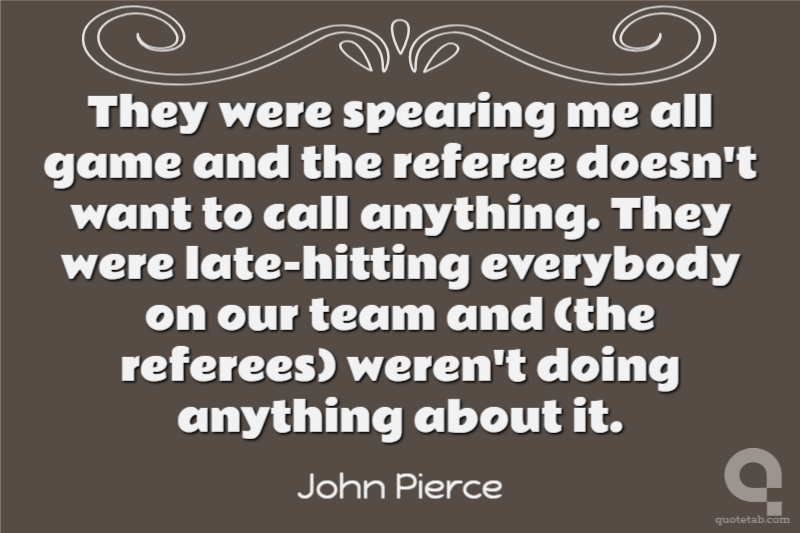 They were spearing me all game and the referee doesn't want to call anything. They were late-hitting everybody on our team and (the referees) weren't doing anything about it.