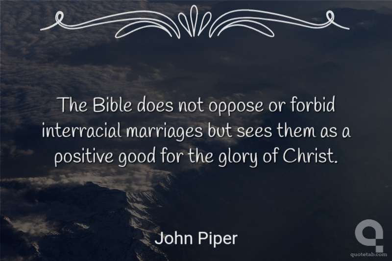 The Bible does not oppose or forbid interracial marriages but sees them as a positive good for the glory of Christ.