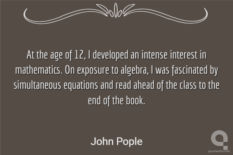 At the age of 12, I developed an intense interest in mathematics. On exposure to algebra, I was fascinated by simultaneous equations and read ahead of the class to the end of the book.