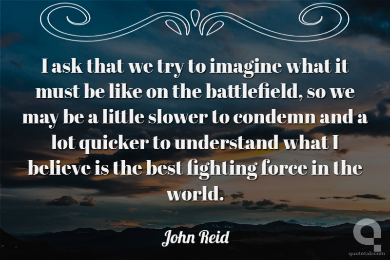 I ask that we try to imagine what it must be like on the battlefield, so we may be a little slower to condemn and a lot quicker to understand what I believe is the best fighting force in the world.