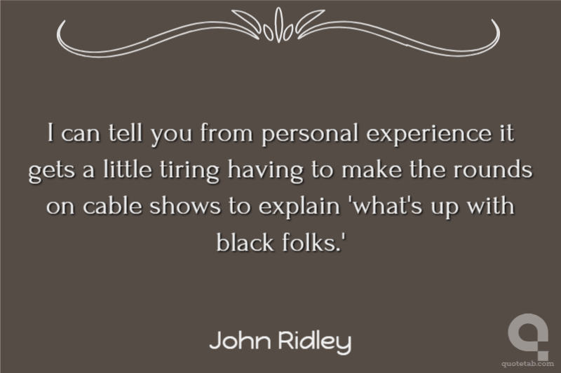 I can tell you from personal experience it gets a little tiring having to make the rounds on cable shows to explain 'what's up with black folks.'