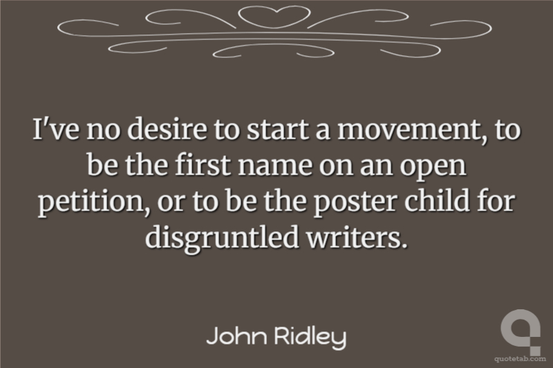 I've no desire to start a movement, to be the first name on an open petition, or to be the poster child for disgruntled writers.