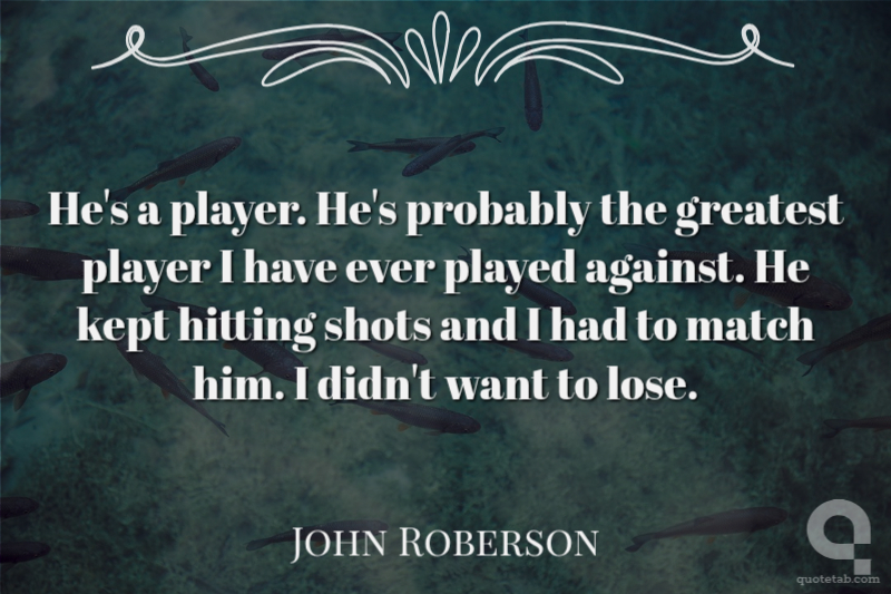 He's a player. He's probably the greatest player I have ever played against. He kept hitting shots and I had to match him. I didn't want to lose.