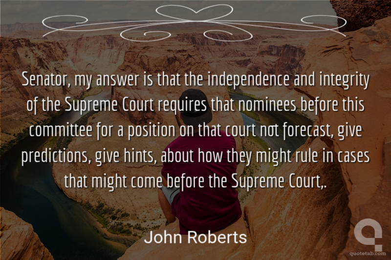 Senator, my answer is that the independence and integrity of the Supreme Court requires that nominees before this committee for a position on that court not forecast, give predictions, give hints, about how they might rule in cases that might come before the Supreme Court,.