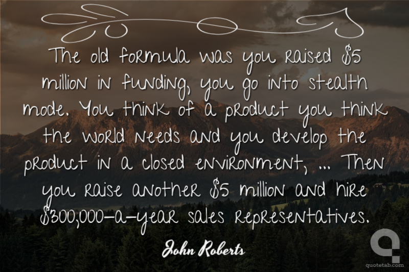 The old formula was you raised $5 million in funding, you go into stealth mode. You think of a product you think the world needs and you develop the product in a closed environment, ... Then you raise another $5 million and hire $300,000-a-year sales representatives.