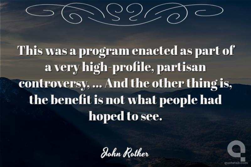 This was a program enacted as part of a very high-profile, partisan controversy, ... And the other thing is, the benefit is not what people had hoped to see.