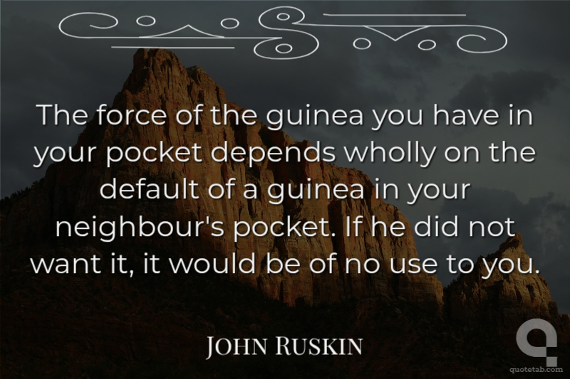 The force of the guinea you have in your pocket depends wholly on the default of a guinea in your neighbour's pocket. If he did not want it, it would be of no use to you.