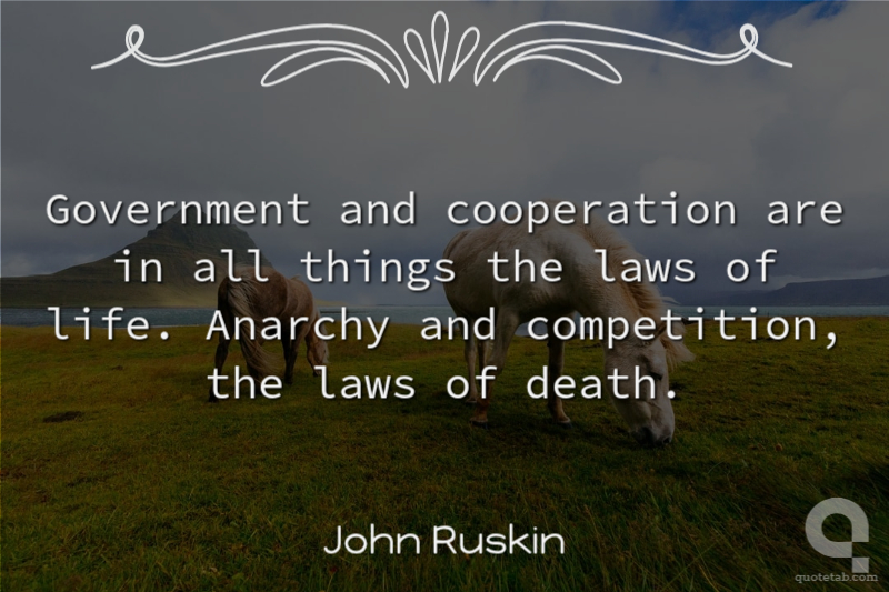 Government and cooperation are in all things the laws of life. Anarchy and competition, the laws of death.