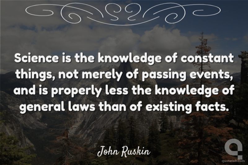 Science is the knowledge of constant things, not merely of passing events, and is properly less the knowledge of general laws than of existing facts.