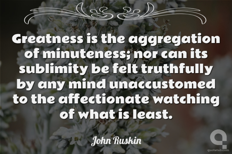 Greatness is the aggregation of minuteness; nor can its sublimity be felt truthfully by any mind unaccustomed to the affectionate watching of what is least.