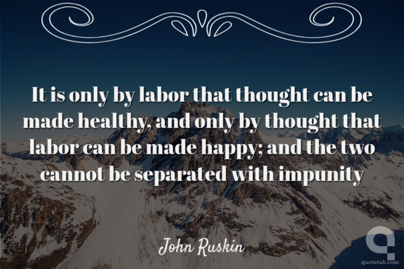 It is only by labor that thought can be made healthy, and only by thought that labor can be made happy; and the two cannot be separated with impunity