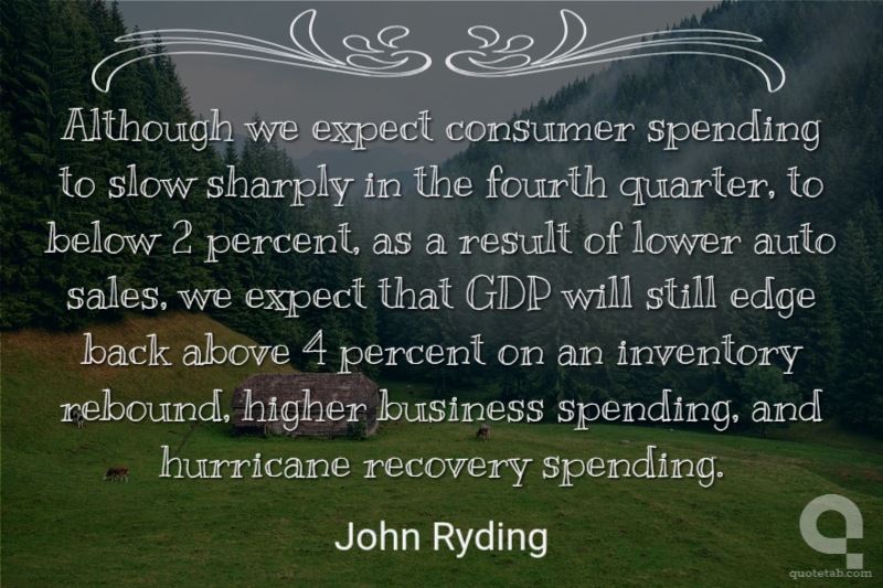 Although we expect consumer spending to slow sharply in the fourth quarter, to below 2 percent, as a result of lower auto sales, we expect that GDP will still edge back above 4 percent on an inventory rebound, higher business spending, and hurricane recovery spending.