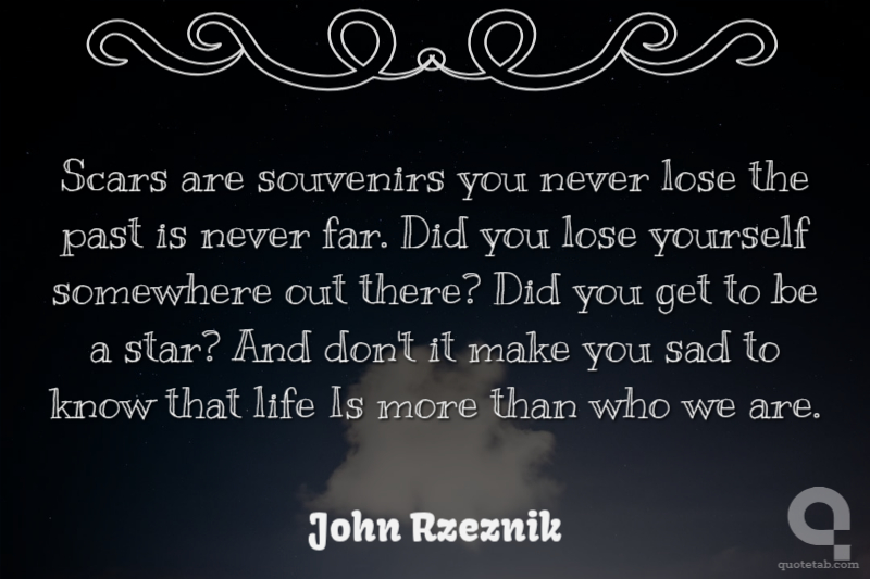 Scars are souvenirs you never lose the past is never far. Did you lose yourself somewhere out there? Did you get to be a star? And don't it make you sad to know that life Is more than who we are.