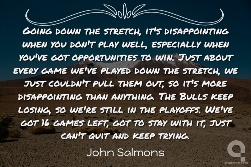 Going down the stretch, it's disappointing when you don't play well, especially when you've got opportunities to win. Just about every game we've played down the stretch, we just couldn't pull them out, so it's more disappointing than anything. The Bulls keep losing, so we're still in the playoffs. We've got 16 games left, got to stay with it, just can't quit and keep trying.