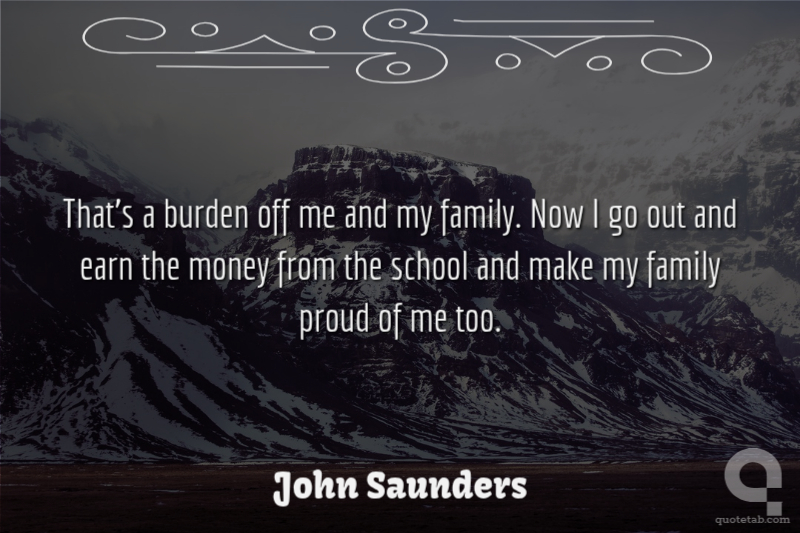 That's a burden off me and my family. Now I go out and earn the money from the school and make my family proud of me too.