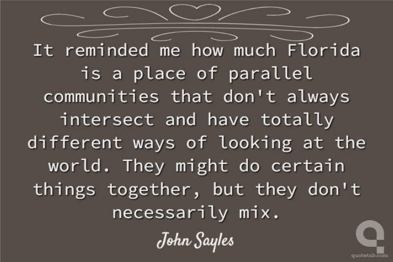 It reminded me how much Florida is a place of parallel communities that don't always intersect and have totally different ways of looking at the world. They might do certain things together, but they don't necessarily mix.