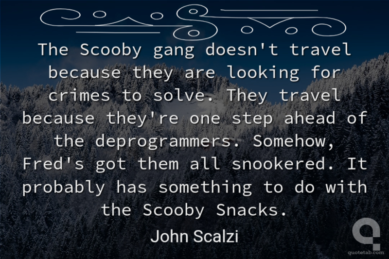 The Scooby gang doesn't travel because they are looking for crimes to solve. They travel because they're one step ahead of the deprogrammers. Somehow, Fred's got them all snookered. It probably has something to do with the Scooby Snacks.