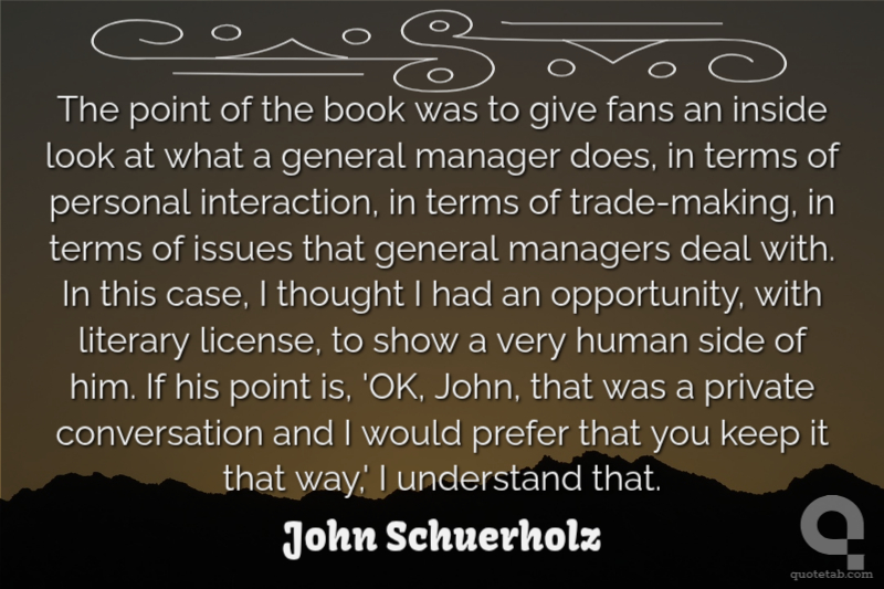 The point of the book was to give fans an inside look at what a general manager does, in terms of personal interaction, in terms of trade-making, in terms of issues that general managers deal with. In this case, I thought I had an opportunity, with literary license, to show a very human side of him. If his point is, 'OK, John, that was a private conversation and I would prefer that you keep it that way,' I understand that.