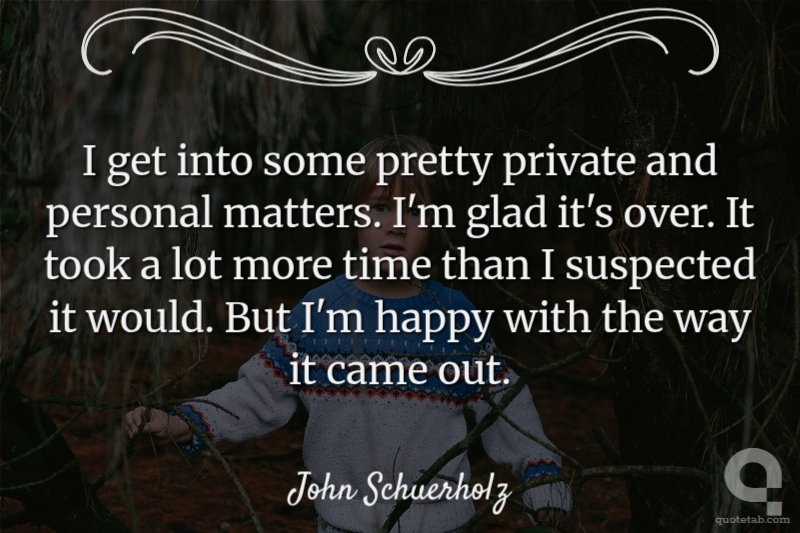 I get into some pretty private and personal matters. I'm glad it's over. It took a lot more time than I suspected it would. But I'm happy with the way it came out.