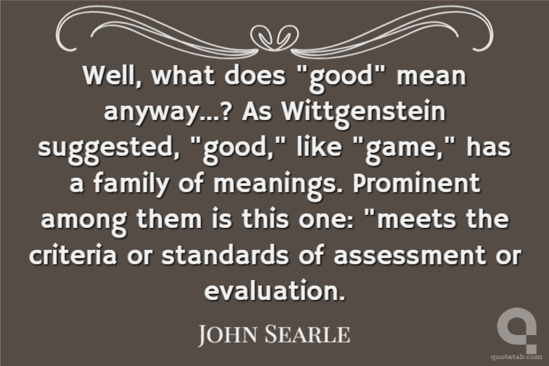 Well, what does "good" mean anyway...? As Wittgenstein suggested, "good," like "game," has a family of meanings. Prominent among them is this one: "meets the criteria or standards of assessment or evaluation.