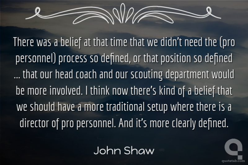 There was a belief at that time that we didn't need the (pro personnel) process so defined, or that position so defined ... that our head coach and our scouting department would be more involved. I think now there's kind of a belief that we should have a more traditional setup where there is a director of pro personnel. And it's more clearly defined.