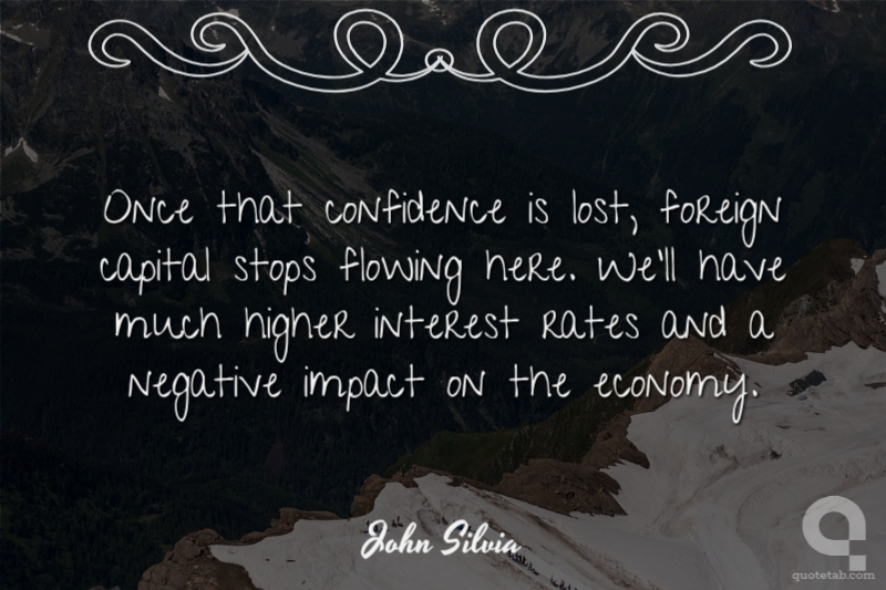 Once that confidence is lost, foreign capital stops flowing here. We'll have much higher interest rates and a negative impact on the economy.
