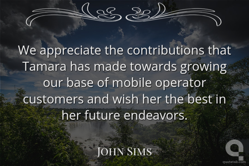 We appreciate the contributions that Tamara has made towards growing our base of mobile operator customers and wish her the best in her future endeavors.