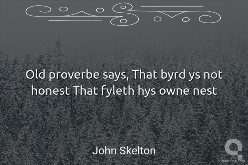 Old proverbe says, That byrd ys not honest That fyleth hys owne nest