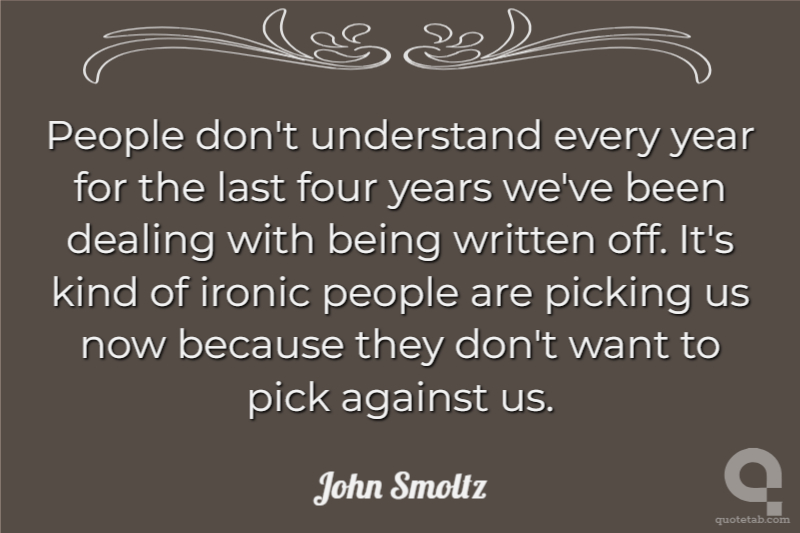 People don't understand every year for the last four years we've been dealing with being written off. It's kind of ironic people are picking us now because they don't want to pick against us.