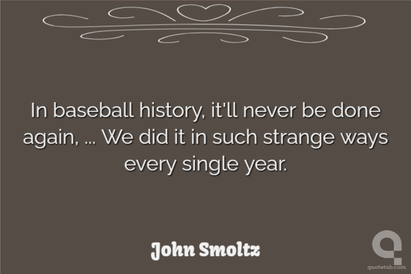 In baseball history, it'll never be done again, ... We did it in such strange ways every single year.
