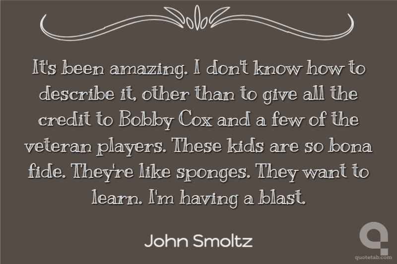 It's been amazing. I don't know how to describe it, other than to give all the credit to Bobby Cox and a few of the veteran players. These kids are so bona fide. They're like sponges. They want to learn. I'm having a blast.