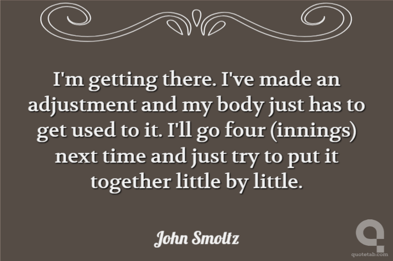 I'm getting there. I've made an adjustment and my body just has to get used to it. I'll go four (innings) next time and just try to put it together little by little.