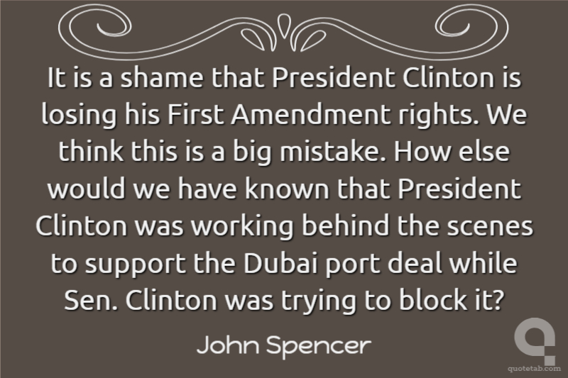 It is a shame that President Clinton is losing his First Amendment rights. We think this is a big mistake. How else would we have known that President Clinton was working behind the scenes to support the Dubai port deal while Sen. Clinton was trying to block it?