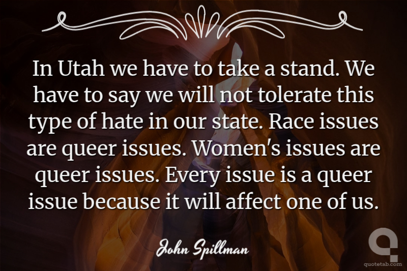 In Utah we have to take a stand. We have to say we will not tolerate this type of hate in our state. Race issues are queer issues. Women's issues are queer issues. Every issue is a queer issue because it will affect one of us.