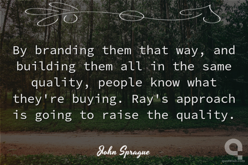 By branding them that way, and building them all in the same quality, people know what they're buying. Ray's approach is going to raise the quality.