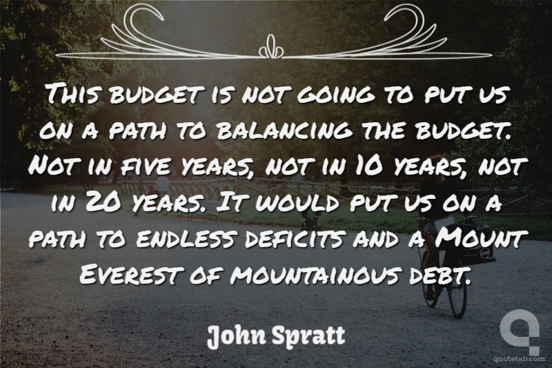 This budget is not going to put us on a path to balancing the budget. Not in five years, not in 10 years, not in 20 years. It would put us on a path to endless deficits and a Mount Everest of mountainous debt.