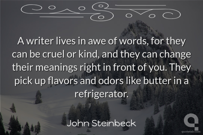A writer lives in awe of words, for they can be cruel or kind, and they can change their meanings right in front of you. They pick up flavors and odors like butter in a refrigerator.