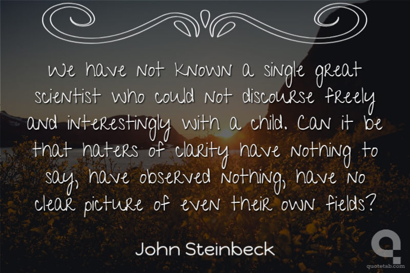 We have not known a single great scientist who could not discourse freely and interestingly with a child. Can it be that haters of clarity have nothing to say, have observed nothing, have no clear picture of even their own fields?