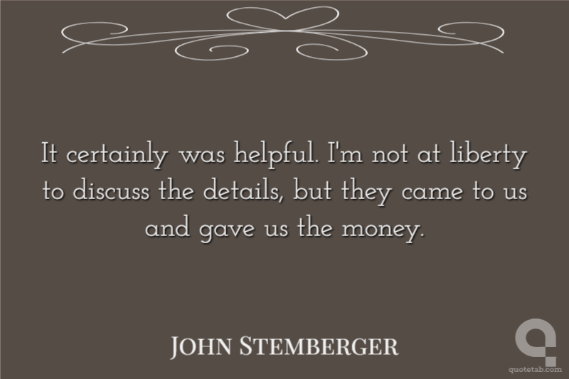 It certainly was helpful. I'm not at liberty to discuss the details, but they came to us and gave us the money.
